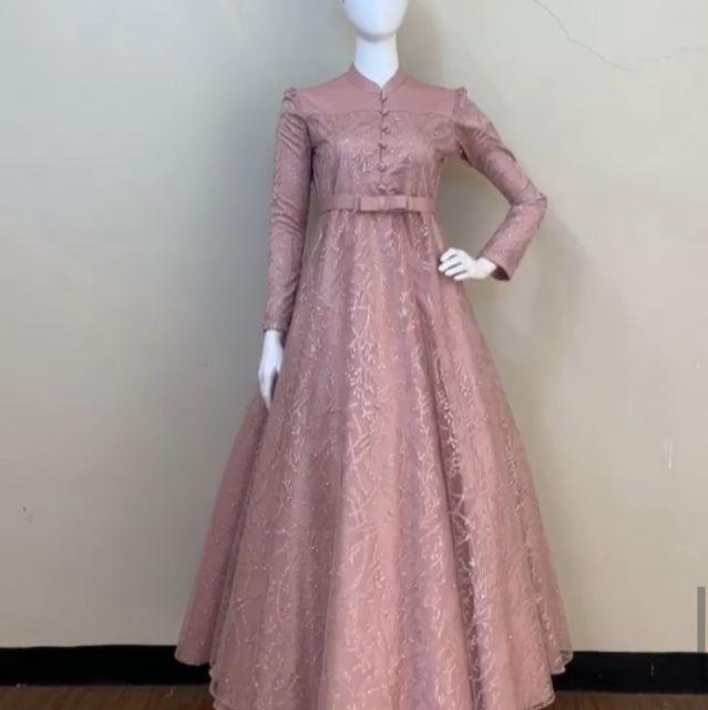Uncategorized Baju Pesta Muslim Brokat Modern Terbaru Victorian Style Model busana muslim wanita modern korea style Gaun pesta muslim dengan atasan brokat